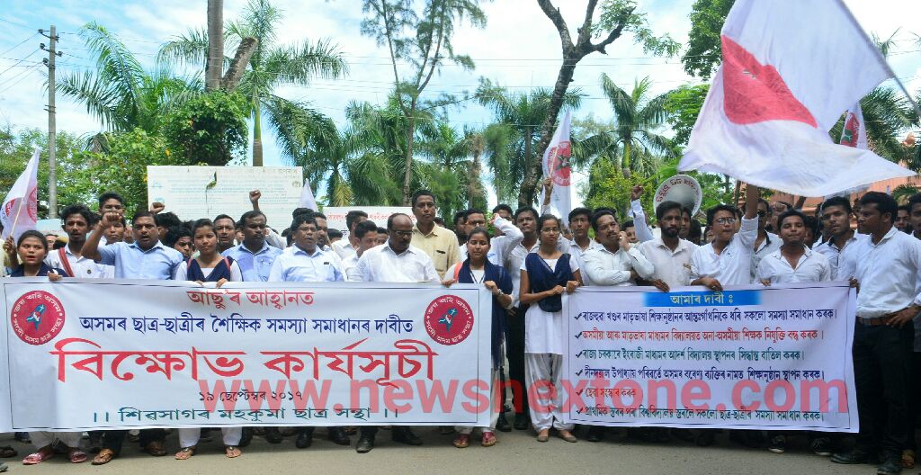 শিৱসাগৰঃ বিভিন্ন শৈক্ষিক সমস্যাৰ সমাধানৰ দাবীত শিৱাগৰত আজি সদৌ অসম ছাত্ৰ সন্থাৰ শিৱসাগৰ জিলা সমিতিয়ে প্ৰতিবাদ কাৰ্যসূচী ৰূপায়ণ কৰে৷ ৰাইজৰ মৌলিক সমস্যা সমাধানত ব্যৰ্থ ৰাজ্য চৰকাৰখনে শিক্ষাৰ ক্ষেত্রত কেতবোৰ ৰাজহুৱা খণ্ডৰ মাতৃভাষাৰ শিক্ষানুষ্ঠান সমূহৰ আন্তঃগাঁথনিকে ধৰি নানান সমস্যা সমাধানৰ বাবে কাম কৰিব বুলি নিৰ্বাচনৰ প্ৰাকমুহূৰ্তত প্ৰতিশ্ৰুতি প্ৰদান কৰিছিল৷ কিন্তু পৰৱৰ্তি সময়ত শিক্ষা খণ্ডৰ উন্নয়ণৰ বিপৰীতে চৰকাৰখনে মাতৃভাষা মাধ্যমৰ বিদ্যালয়সমূহ ধ্বংসৰ মূখলৈ ঠেলি দিয়াৰ ষড়যন্ত্র কৰিছে৷