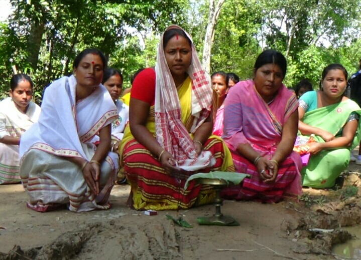 আমগুৰিত পথৰ জৰাজীর্ণ অৱস্থা, পথৰ ওপৰত তামোল-পাণেৰে প্রতিবাদ মহিলাৰ