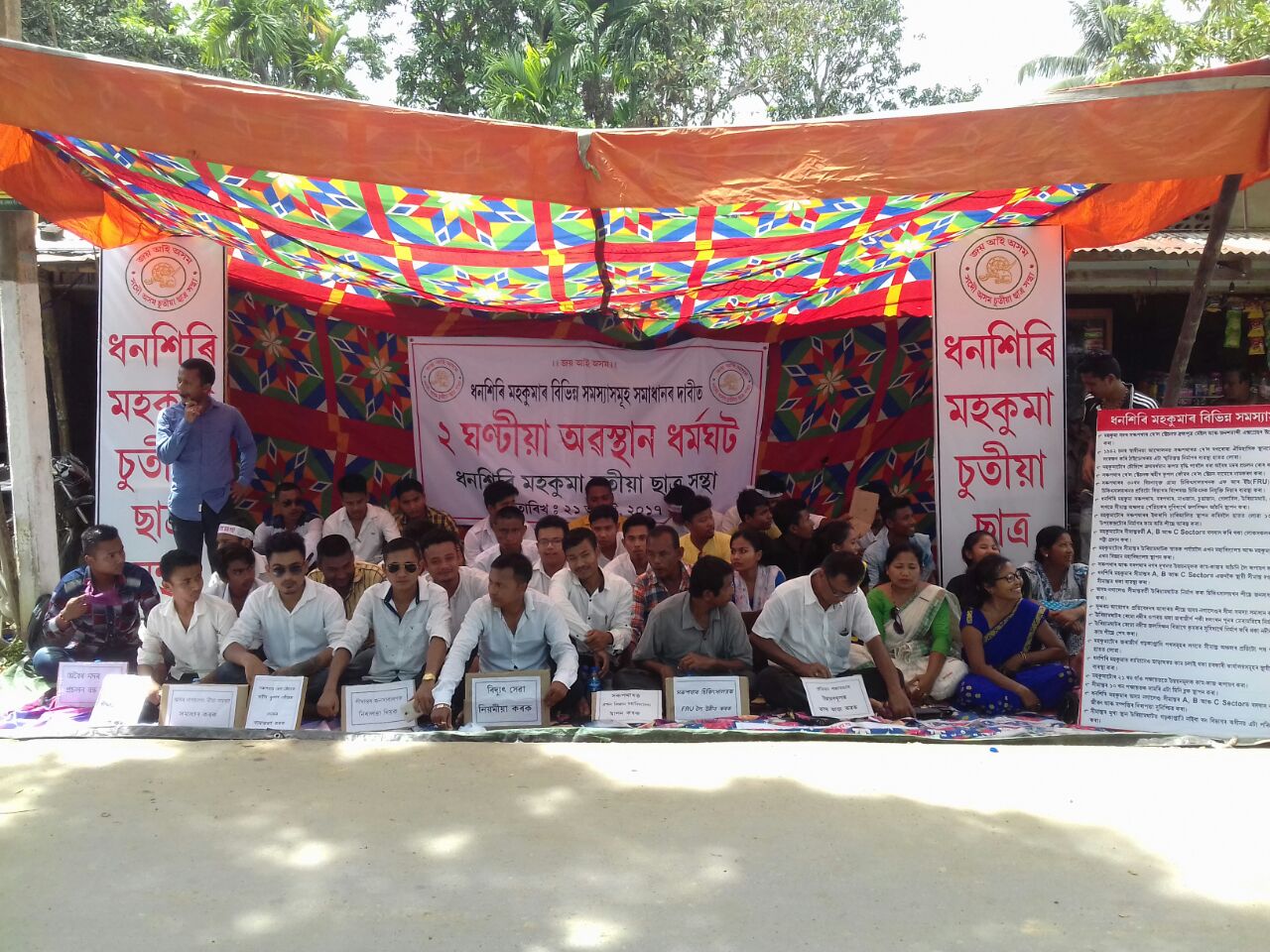 ধনশিৰিঃ ৰাজ্য চৰকাৰৰ বিৰুদ্ধে চুতীয়া ছাত্ৰ সন্থাই আজি গোলাঘাট জিলাৰ ধনশিৰিত প্ৰতিবাদ সাব্যস্ত কৰে৷ সংগঠনটোৰ শতাধিক নেতা-কৰ্মীয়ে মহকুমাধিপতিৰ কাৰ্যালয়ৰ সন্মুথত অৱস্থান ধৰ্মঘট কাৰ্যসুচী ৰূপায়ণ কৰে৷