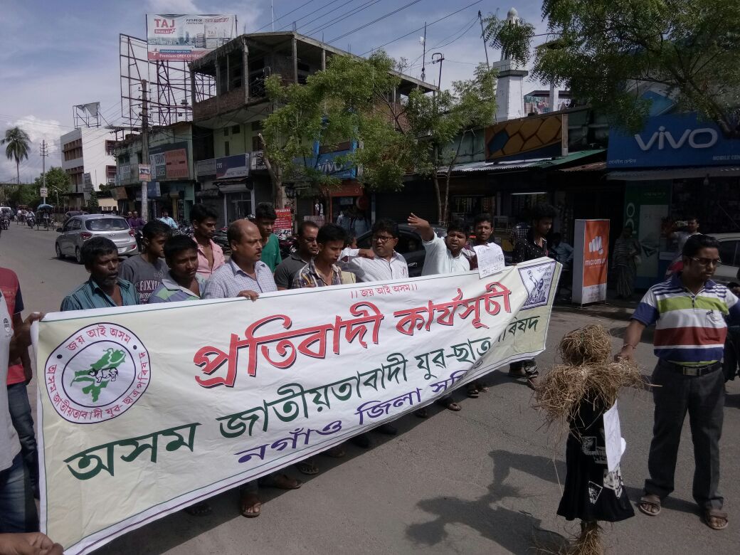 তাৰ পৰিপ্ৰেক্ষিতত আজি নগাঁও জিলাৰ যুৱ ছাত্ৰ পৰিষদৰ নগাঁও জিলাৰ সমিতিয়ে আজি নগাঁও চহৰত প্ৰতিবাদী কাৰ্যসূচী ৰূপায়ন কৰে।