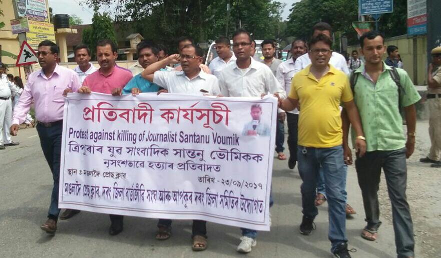 মঙলদৈঃ চুবুৰীয়া ৰাজ্য ত্ৰিপুৰাৰ যুৱ সাংবাদিক শান্তনু ভৌমিকক যোৱা ২০ ছেপ্তেম্বৰত সংবাদ গ্ৰহণ কৰিবলৈ যাওতেই দুৰ্বৃত্তই নৃশংস ভাৱে হত্যা কৰিছিল। সাংবাদিক গৌৰী লংকেশক হত্যাৰ পাছতেই শান্তনু ভৌমিকৰ হত্যাৰ ঘটনাই সমগ্ৰ দেশ জুৰি আলোড়নৰ সৃষ্টি কৰিছে৷