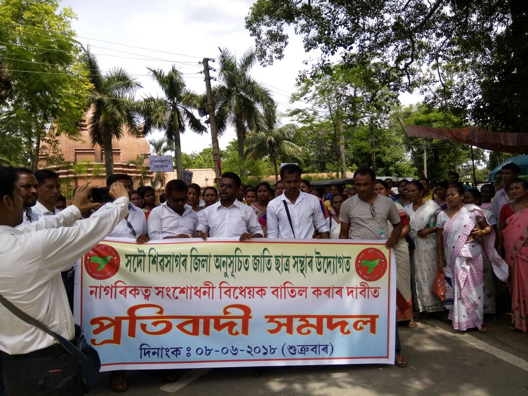 নাগৰিকত্ব সংশোধনী বিধেয়কৰ বিৰুদ্ধে সকলোৱে কৰিছে প্ৰতিবাদ। প্ৰতিদিনে কঁপি উঠিছে ৰাজপথ। তাৰ মাজতে অনুসূচিত জাতি ছাত্ৰ সন্থাৰ শিৱসাগৰ জিলা সমিতিয়ে শুকুৰবাৰে নাগৰিকত্ব সংশোধনী বিধেয়কৰ বিৰুদ্ধে উত্তাল প্ৰতিবাদ সাব্যস্ত কৰে। কেইবাশতাধিক লোকে শিৱসাগৰত চহৰত সমদল উলিয়াই চৰকাৰ বিৰোধী শ্ল’গানেৰ আকাশ-বতাহ কঁপাই তোলে। সমদলত অংশ লোৱা প্ৰতিবাদকাৰীসকলে জিলা উপায়ুক্তৰ জৰিয়তে দেশৰ প্ৰধানমন্ত্ৰীক এখন স্মাৰক পত্ৰ প্ৰেৰণ কৰে।