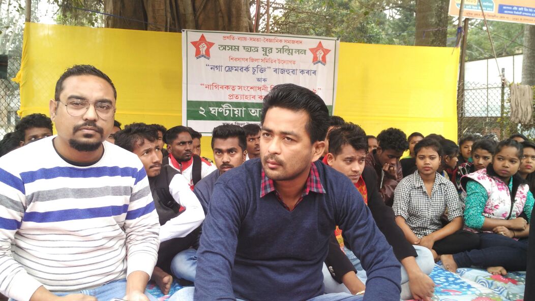 শিৱসাগৰত অসম ছাত্ৰ-যুৱ সন্মিলনৰ প্ৰতিবাদ, ফ্ৰেমৱৰ্ক এগ্ৰিমেন্ট ৰাজহুৱা কৰাৰ দাবী