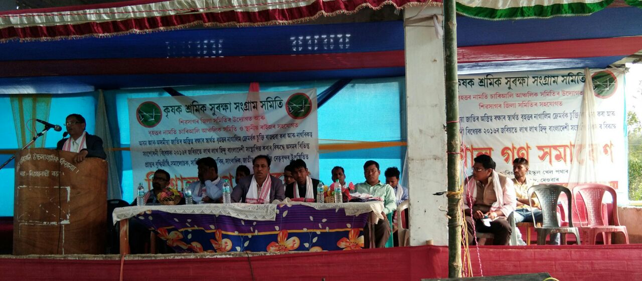 নামতিঃ কৃষক শ্ৰমিক সুৰক্ষা সংগ্ৰাম সমিতিৰ শিৱসাগৰ জিলা সমিতি আৰু বৃহত্তৰ নামতি চাৰি আলি আঞ্চলিক সমিতিৰ উদ্যোগত দেওবাৰে নামতি চাৰিআলি হাইস্কুল খেল পথাৰত নাগালিম ফ্ৰেমৱৰ্ক, হিন্দু বাংলাদেশী সংস্থাপনৰ বিৰুদ্ধে এখন বৃহৎ সমাৱেশ অনুষ্ঠিত হয়৷