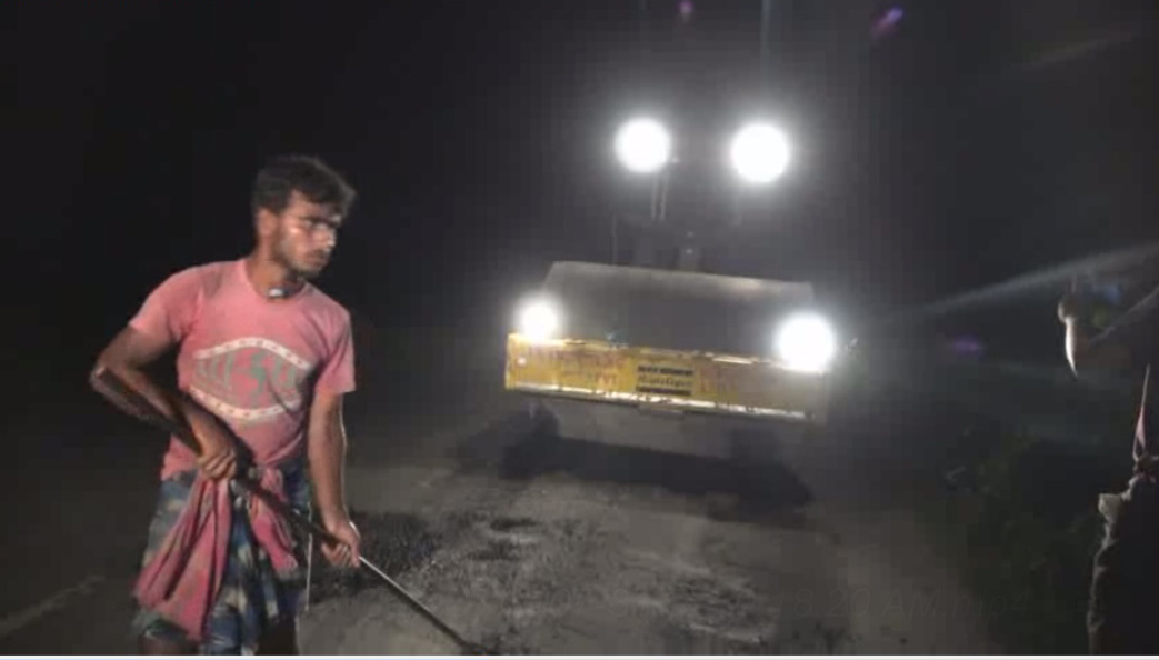বঢ়মপুৰঃ দোভাগ নিশা ৰাজপথত যুদ্ধ সদৃশ পৰিৱেশ৷ যেন নিশাৰ ভিতৰতে গড় বান্ধি শেষ কৰিব লাগিব৷ নহলে যেন শত্ৰু পক্ষৰ আক্ৰমণত ধৰাশয়ী হোৱাৰ আশংকা ঘনীভূত হৈছে৷ দোভাগ নিশা এই ব্যস্ততা দেখা গ’ল নগাঁৱত৷ কোনোৱে বিটুমিন ছটিয়াইছে, আন কোনোৱে বিটুমিনত ভজা শিল ছটিয়াই ৩৭নং ৰাষ্ট্ৰীয় ঘাই মেৰামতি কৰাত ব্যস্ত৷ নগাঁৱৰ চামগুৰিত দেওবাৰে নিশা দেখা গ’ল এই দৃশ্য।
