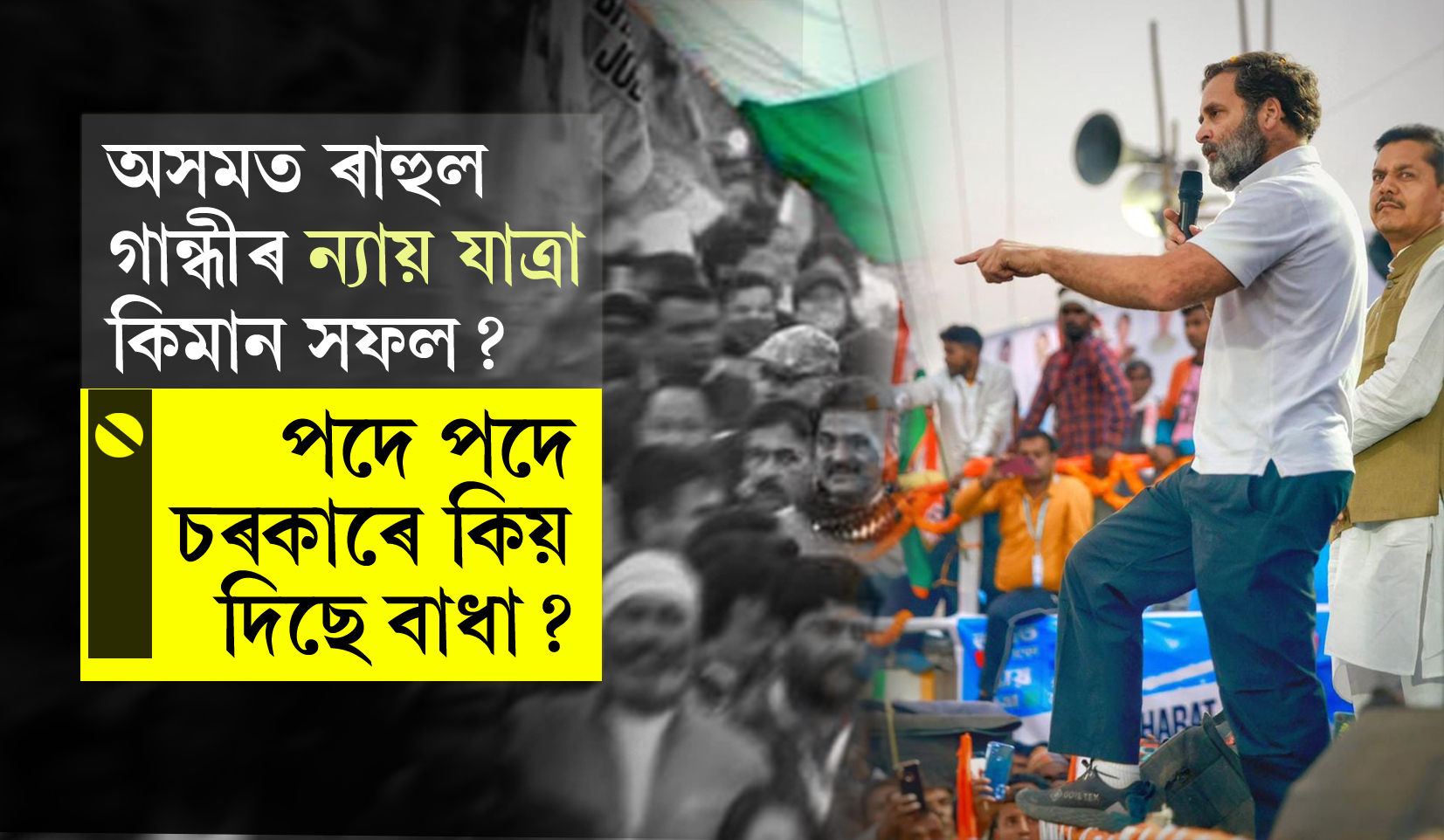 ন্যায় যাত্ৰাৰ সময়ত অসমত বাৰে বাৰে বিজুতি খাইছে কংগ্ৰেছ সাংসদ ৰাহুল গান্ধী। অসমত ১৮ জানুৱাৰীৰ পৰা আৰম্ভ হৈছিল ৰাহুল গান্ধীৰ ন্যায় যাত্ৰা। কিন্তু আৰম্ভণিৰ দিনটোৰ পৰাই আৰক্ষী-প্ৰশাসনৰ বাধাৰ সন্মুখীন হৈ বাৰে বাৰে সলনি কৰিবলগীয়া হৈছে যাত্ৰাৰ পথ। সমান্তৰালভাৱে সংঘটিত হৈছে কংগ্ৰেছ কৰ্মীৰ ওপৰত আক্ৰমণ, নিশাৰ ভাগত দুষ্কৃতিকাৰীয়ে ফালি পেলাইছে যাত্ৰাৰ বেনাৰ-পোষ্টাৰ আৰু ক্ষতিসাধন কৰা হৈছে যাত্ৰাৰ বাবে ব্যৱহাৰ কৰিবলগীয়া বাহনৰ। আনকি যাত্ৰাৰ মাজতে প্ৰৱেশ কৰা বিজেপি বিধায়কৰ সমৰ্থকৰ আক্ৰমণত আহতও হ’বলগীয়া হৈছে প্ৰদেশ কংগ্ৰেছৰ সভাপতি ভূপেন বৰাও।