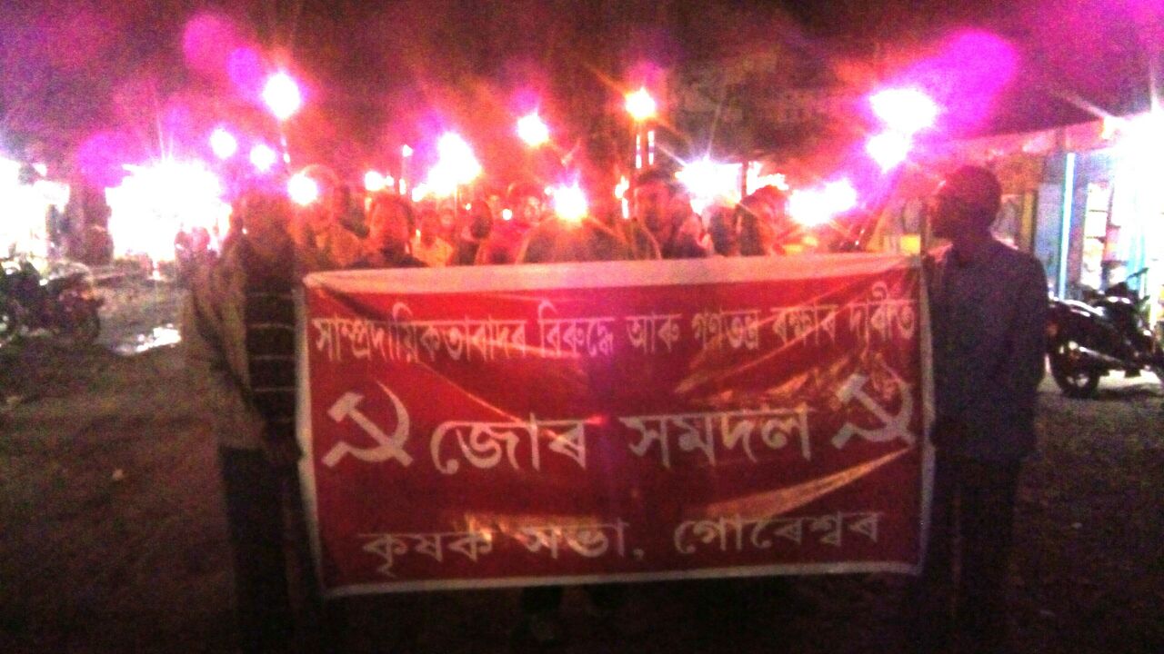 গোৰেশ্বৰঃ নিখিল ভাৰত কৃষক সভাই বাক্সা জিলাৰ গোৰেশ্বৰত সোমবাৰে সাম্প্ৰদায়িকতাৰ বিৰুদ্ধে, গণতন্ত্র ৰক্ষাৰ দাবীত সমগ্ৰ ভাৰতবৰ্ষৰ লগতে অসমতো জোঁৰ সমদল উলিযায়৷