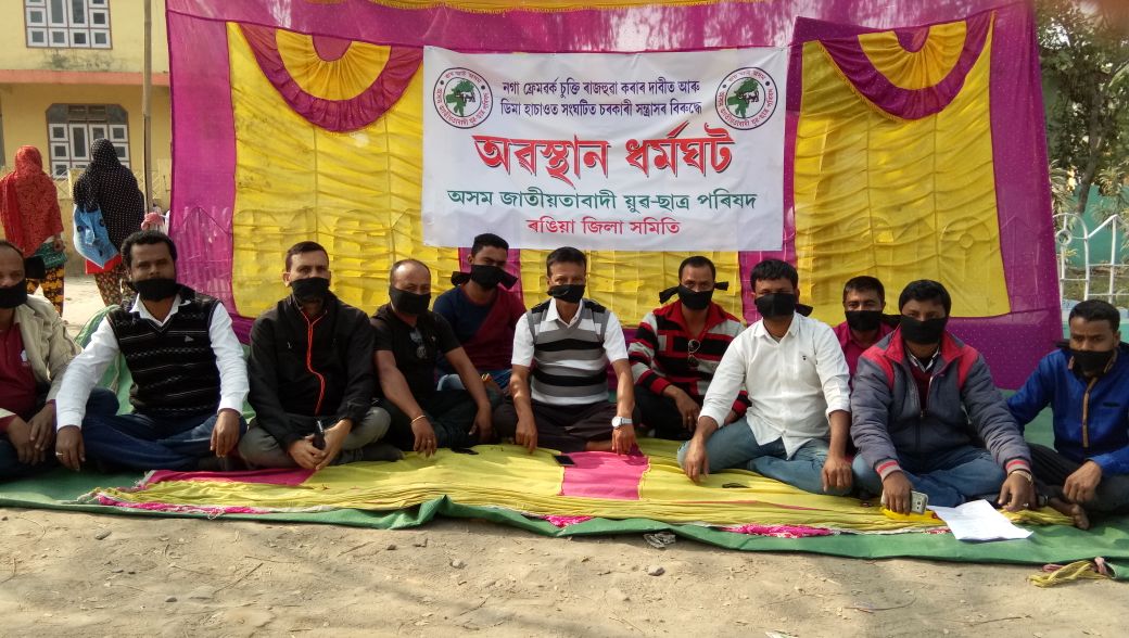 ৰঙিয়া/নলবাৰী/চৰাইদেউঃ নগা ফ্ৰেমৱৰ্ক চুক্তি ৰাজহুৱা কৰাৰ দাবীত আৰু ডিমা হাচাওত সংঘটিত চৰকাৰী সন্ত্ৰাসৰ বিৰুদ্ধে বৃহস্পতিবাৰে অসম জাতীয়তাবাদী যুৱ-ছাত্ৰ পৰিষদে ৰাজ্যজুৰি প্ৰতিবাদ সাব্যস্ত কৰে৷ কেন্দ্ৰ আৰু ৰাজ্য চৰকাৰে কোনো কাৰণত অসমৰ ভূমি চুবুৰীয়া ৰাজ্যক গতাই দিব নিদিয়াৰ হুংকাৰ দিয়ে সংগঠনটোৱে।