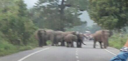 নলবাৰীঃ মানুহৰ আহ-যাহৰ বাবে ব্যৱহাৰ কৰা পথ ব্যৱহাৰ কৰিলে বনৰীয়া হাতীৰ জাকে৷ বহু সময় ধৰি পথ আৱদ্ধ কৰি ৰখাত পথৰ দুয়ো দিশে আৱদ্ধ হৈ থাকিব লগা হ’ল বহু লোক৷