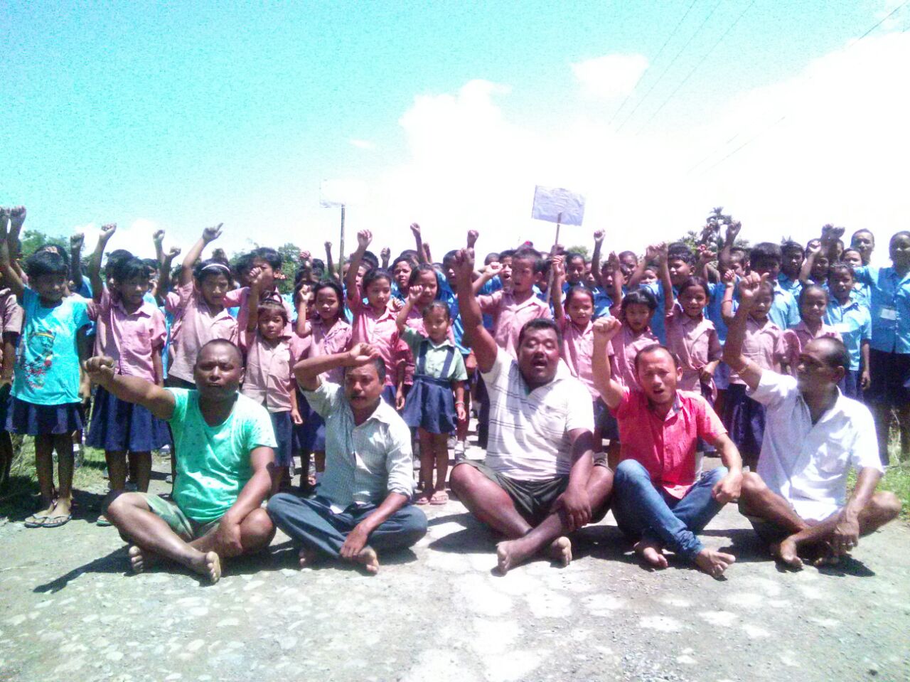 টিংখাংঃ পিঠি পোৰা ৰদত স্কুলৰ পৰা ওলাই আহিল ছাত্ৰ-ছাত্ৰী৷ স্কুলৰ পৰা ওলাই আহি প্ৰতিবাদত নামিল কণ কণ ছাত্ৰ-ছাত্ৰী৷ টিংখাঙত পাঠদান এৰি প্ৰতিবাদত নামিল কণ-কণ ছাত্ৰ -ছাত্ৰী। অইল ইণ্ডিয়াৰ বিৰুদ্ধে প্ৰতিবাদ নামিল ছাত্ৰ-ছাত্ৰীসকল। অইলৰ গধুৰ বাহনৰ বাবে টিংখাঙৰ পৰা নামৰূপ সংযোগী গুৰুত্বপূৰ্ণ পথটো বিধ্বস্ত হৈ পৰে৷
