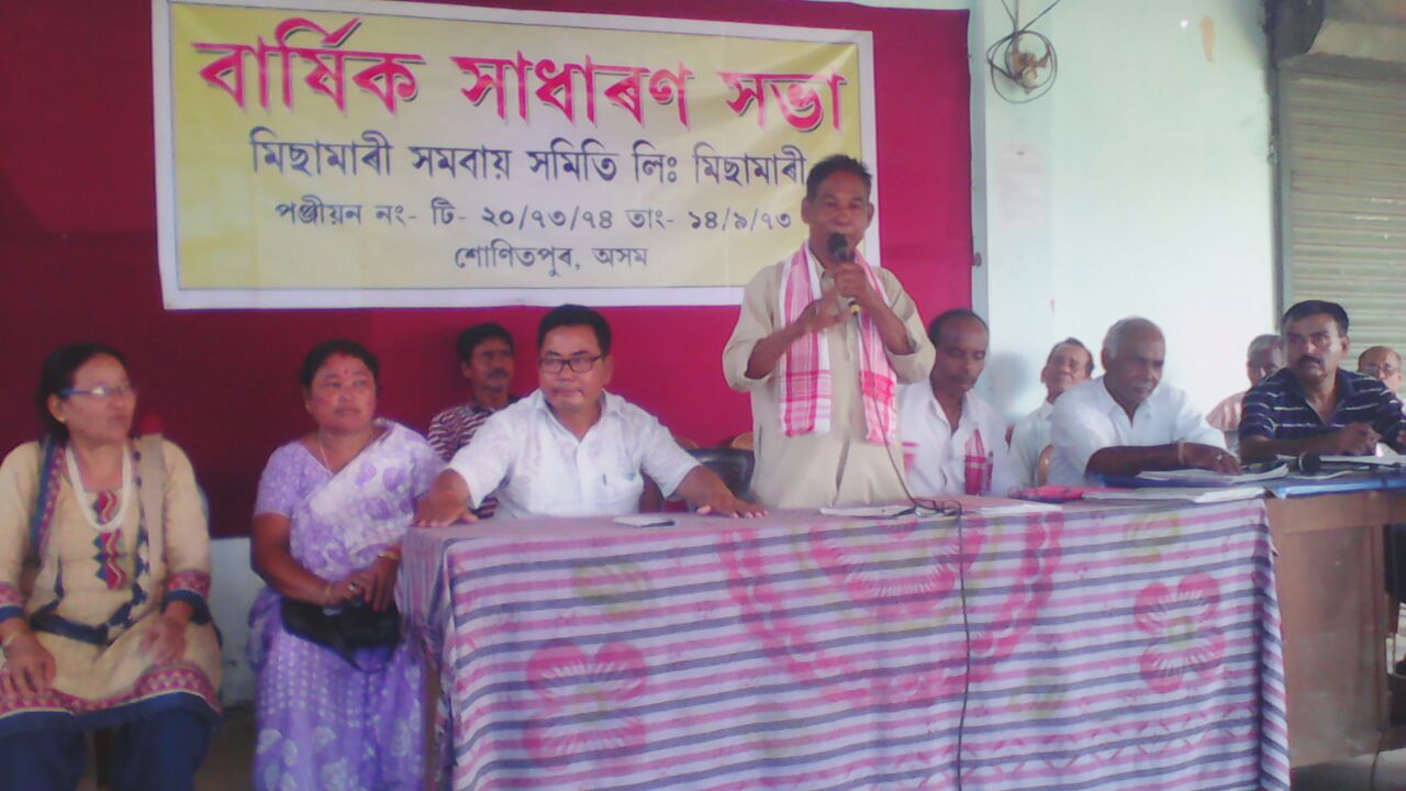 মিছামাৰীঃ শোণিতপুৰ জিলাৰ মিছামাৰী সমবায় সমিতিৰ ২০১৭-২০১৮ বৰ্ষৰ বাৰ্ষিক সাধাৰণ সভাখন আজি সমবায়ৰ প্ৰাংগনত অনুষ্ঠিত হৈ যায়। সমবায়টোৰ স্থায়ী সভাপতি হলিৰাম দাসৰ সভাপতিত্বত অনুষ্ঠিত সভাত সভাপতিৰ আসন গ্ৰহণৰ পাছতে সভাৰ উদ্দেশ্যে ব্যাখ্যা আগবঢ়াই সম্পাদক পৰশুৰাম উপাধ্যায়ে।