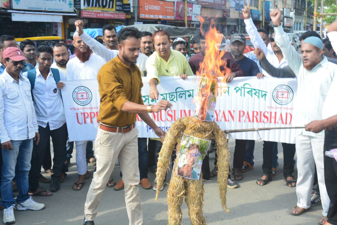 উজনি অসম মুছলিম কল্যান পৰিষদৰ শিৱসাগৰ জিলা সিমিতিয়ে বিজেপি বিধায়কগৰাকীৰ মঙলবাৰে শিৱসাগৰ নগৰৰ দলমুখ চাৰিআলিত শিলাদিত্যদেৱৰ পুত্তলিহা দাহ কৰি উত্তাল প্ৰতিবাদ সাব্যস্ত কৰে। প্ৰতিবাদকাৰীসকলে শিলাদিত্য মুৰ্দাবাদ, বিজেপি হায় হায়, শিলাদিত্য বিজেপিৰ পৰা বহিস্কাৰ কৰক আদি শ্ল’গানেৰে পৰিবেশ উত্তাল কৰি তোলে৷