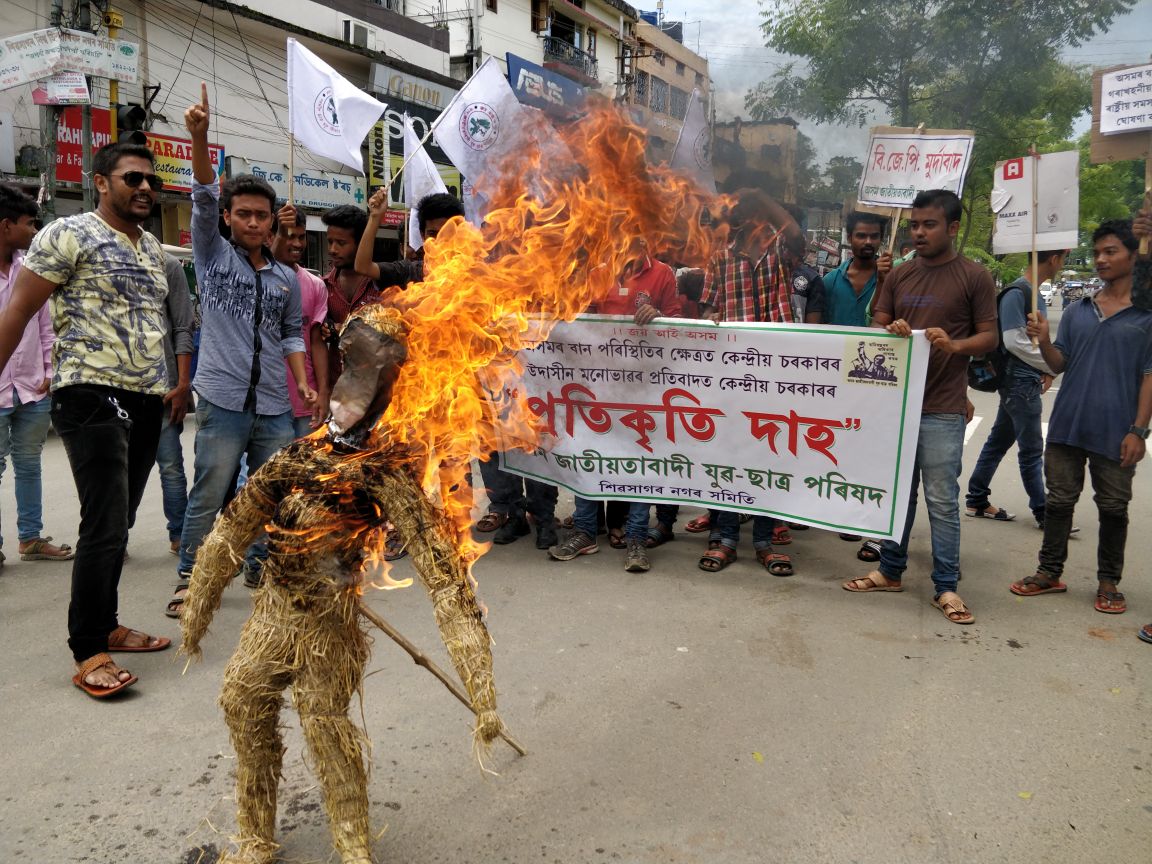 শিৱসাগৰঃ অসম জাতীয়তাবাদী যুৱ ছাত্ৰ পৰিষদৰ শিৱসাগৰ নগৰ সমিতিয়ে বান সাহায্য প্ৰদানত কেন্দ্ৰ আৰু ৰাজ্য চৰকাৰ ব্যৰ্থ হোৱাৰ অভিযোগ তুলি শীঘ্ৰে এই ক্ষেত্ৰত ব্যৱস্থা গ্ৰহণৰ দাবীত আজি প্ৰধানমন্ত্ৰী নৰেন্দ্ৰ মোদীৰ প্ৰতিকৃতি দাহ কৰে। ৰাজ্যৰ বান পৰিস্থিতিয়ে ভয়াৱহ ৰূপ ধাৰণ কৰাৰ পাছতো কেন্দ্ৰীয় চৰকাৰে গুৰুত্ব আৰোপ নকৰাৰ অভিযোগ উত্থাপন কৰি সংগঠনটোৱে শিৱসাগৰ নগৰৰ দলমুখ চাৰিআলিত প্ৰধানমন্ত্ৰী মোদীৰ প্ৰতিকৃতি দাহ কৰে।