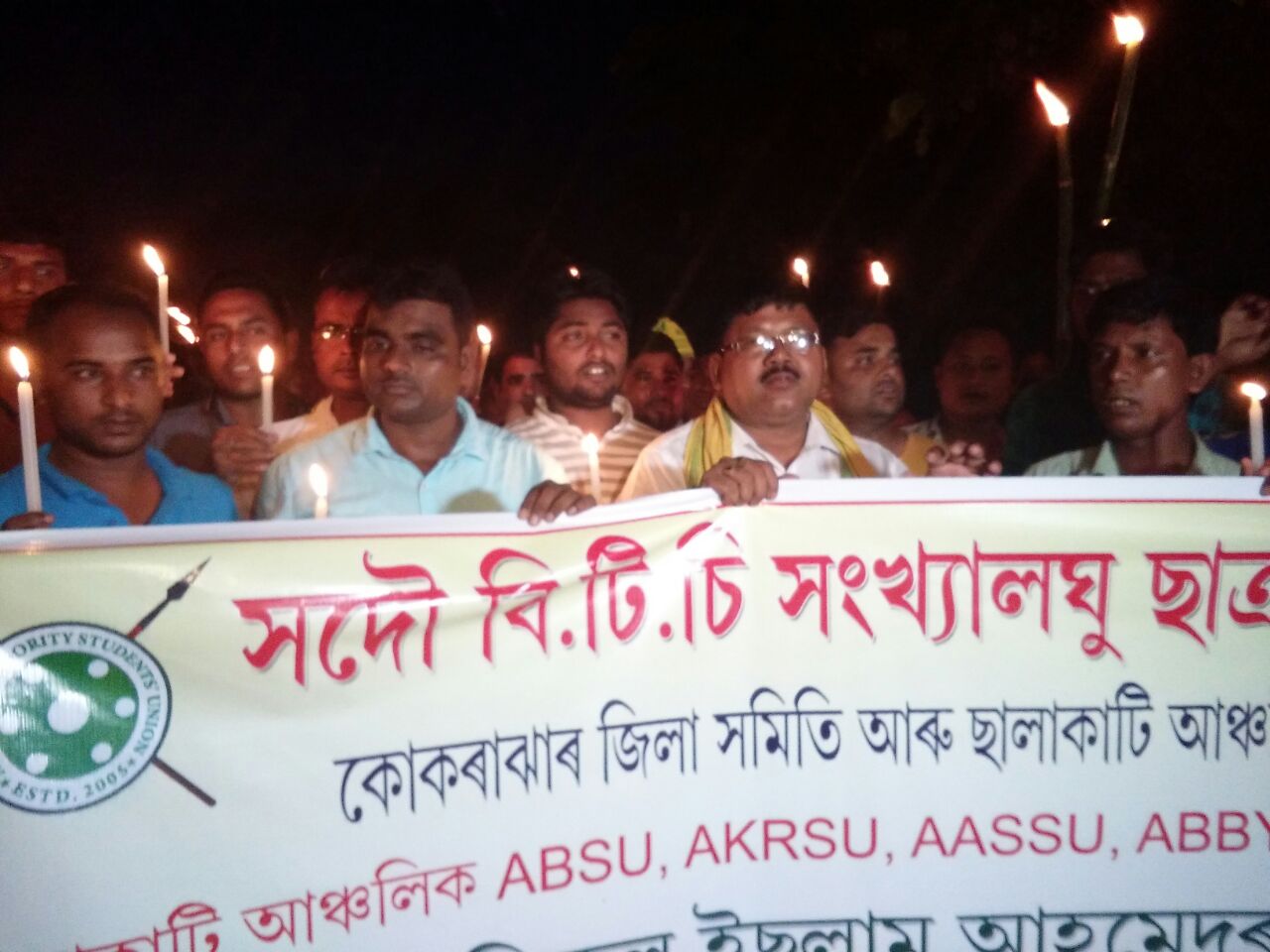 ছালাকাটিস্থিত এবিএমছুৰ কাৰ্যালয়ৰ পৰা সহস্ৰাধিক প্ৰতিবাদকাৰীয়ে আজি সন্ধিয়া ৭ বজাত হাতে হাতে জোৰ লৈ বিভিন্ন শ্লোগানেৰে ছালাকাটি পৰিভ্ৰমণ কৰে। হত্যাকাৰীক কৰায়ত্ব কৰক, লাফিকুলৰ হত্যাকাণ্ডৰ চিবিআই তদন্ত দিয়ক, আমাক ন্যায় লাগে আদি ইত্যাদি শ্লোগানেৰে চহৰৰ পৰিৱেশ উত্তাল কৰি তোলে। উক্ত প্ৰতিবাদী সমদলত আক্ৰাছুৰ সভাপতি হিতেশ্বৰ বৰ্মন, আছু , এবছু, চাওতাল ছাত্ৰ সন্থা, বেংগলী যুৱ ছাত্ৰ পৰিষদ ,আছাকে ধৰি কেবাটাও সংগঠনৰ প্ৰতিনিধিয়ে অংশগ্ৰহণ কৰে।