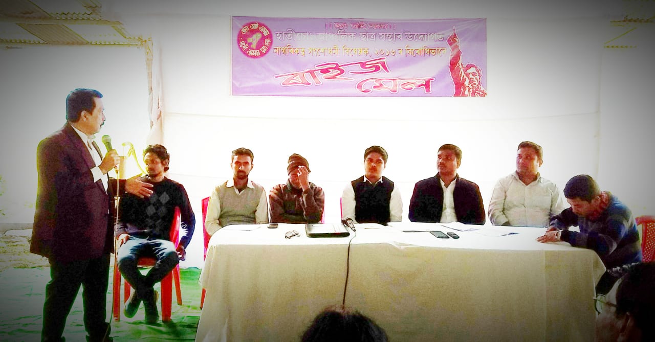 নগাঁওঃ ৰাজ্যৰ সৰ্বত্ৰে নাগৰিকত্ব সংশোধনী বিধেয়ক-২০১৬ ৰ বিৰুদ্ধে বিভিন্ন দল-সংগঠনে ব্যাপকৰূপে প্ৰতিবাদ সাবস্ত্য কৰি অহাৰ সময়তে নগাঁও জিলাৰ হাতীচোং আঞ্চলিক ছাত্ৰ সন্থাইও ধাৰাবাহিকভাৱে বিভিন্ন প্ৰতিবাদী কাৰ্যসূচী ৰূপায়ণ কৰি আহিছে৷ ইয়াৰ অংশহিচাপে দেওবাৰে চকলাঘাট ৰাস মন্দিৰ প্ৰাংগণত জাতি ধ্বংসী বিধেয়কখন বাতিলৰ দাবীত আৰু অনাগত দিনত কৰ্মপন্থা যুগুত কৰাৰ উদ্দেশ্যে এখন ৰাইজ মেল অনুষ্ঠিত কৰা হয়৷