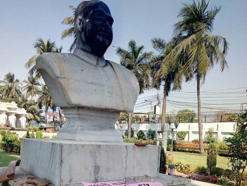 #Correction West Bengal: Bharatiya Jana Sangh founder Syama Prasad Mukherjee's bust was vandalized in Kolkata's Kalighat pic.twitter.com/BENhueIgiK