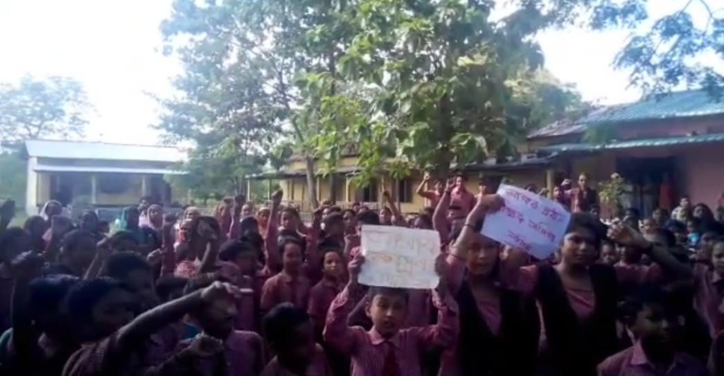 গোৰেশ্বৰঃ কিশোৰীক যৌন নিৰ্যাতন চলোৱাৰ অভিযোগত বাক্সা জিলাৰ গোৰেশ্বৰ উত্তাল হৈ থকাৰ মাজতে শুকুৰবাৰে অভিযুক্ত শিক্ষকৰ পক্ষত থিয় দিলে সতীৰ্থ শিক্ষক, ছাত্ৰী-ছাত্ৰী তথা স্থনীয় ৰাইজ৷ কেবাটাো সংগঠনে প্ৰতিবাদ অব্যাহত ৰখাৰ সময়তে প্ৰধান শিক্ষকৰ বিৰুদ্ধে ছাত্ৰীক যৌন নিৰ্যাতনৰ ঘটনাই শনিবাৰে অন্য মোৰ লয়।