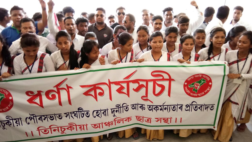 তিনিচুকীয়াঃ তিনিচুকীয়াত আছুৱে আজি উত্তাল প্ৰতিবাদ সাব্যস্ত কৰে৷ পৌৰসভাত সংঘটিত কেলেংকাৰীৰ তদন্তৰ দাবীত আছুই উত্তাল প্ৰতিবাদ সাব্যস্ত কৰে তিনিচুকীয়া পৌৰ সভাৰ কাৰ্যালয়ৰ সন্মুখত৷ দীৰ্ঘদিন ধৰি তিনিচুকীয়া পৌৰসভাত চলি অহা অনিয়ম, দুৰ্নীতি আৰু কেলেংকাৰিৰ প্ৰতিবাদত সৰৱ হৈ পৰিছে তিনিচুকীয়া আঞ্চলিক ছাত্ৰ সন্থা।