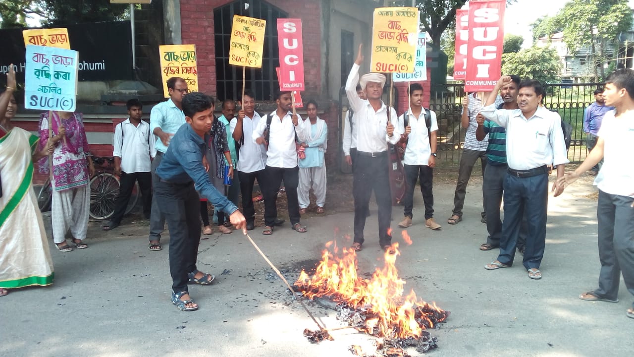newsnextone.com। তেজপুৰঃ বাওঁপন্থী ছাত্ৰ সংগঠন SUCI-ৰ শোণিতপুৰ জিলা সমিতিয়ে তেজপুৰত পৰিবহন মন্ত্ৰী চন্দ্ৰমোহন পাটোৱাৰীৰ প্রতিমূর্তি দাহ কৰে। ইন্ধনজাত সামগ্ৰীৰ মূল্যবৃদ্ধিৰ সুযোগ লৈ জনসাধাৰণক মাধমাৰ শোধাই বাছ ভাড়া বৃদ্ধি কৰিছে। প্ৰতিবাদকাৰী সকলে তেজপুৰৰ ডাক বংলাৰ সন্মুখত প্ৰতিবাদ সাবস্ত্য কৰি শীঘ্ৰেই বাছ ভাড়া সঠিক সঠিক কৰিবলৈ বিভাগীয় কৰ্তৃপক্ষক আহ্বান জনায়।