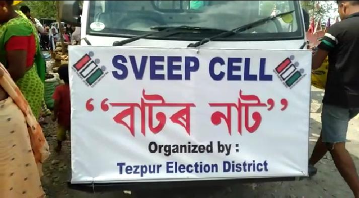 তেজপুৰঃ আগন্তক লোকসভা নিৰ্বাচন ২০১৯ৰ প্ৰতি লক্ষ্য ৰাখি তেজপুৰ জিলা নিৰ্বাচনী আয়োগৰ উদ্যোগত ৰাইজক সজাগতাৰ বাবে বাটৰ নাট প্ৰদৰ্শন কৰা হয়।