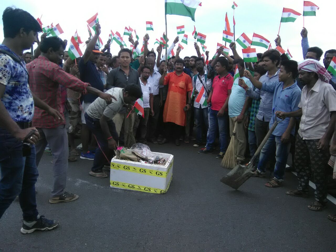 ৭১ সংখ্যক স্বাধীনতা দিৱসৰ দিনা জিলাখনৰ সহস্ত্ৰাধিক ৰাইজে হাতে হাতে ঝাড়ু লৈ স্বচ্ছ ভাৰত অভিযান চলাই৷ দৰ্শনাৰ্থীসকলক দলংখনত জাৱৰ-জোথৰ নেপেলাবলৈ আহ্বান জনায় ভূঞাই।