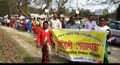 শিক্ষকসকলে তেওঁলোকৰ দাবী সম্বলিত বেনাৰ, ফেষ্টুন লৈ কলবাৰী প্ৰাথমিক বিদ্যালয়ৰপৰা এক দীঘলীয়া সমদলেৰে তামুলপুৰ মহকুমা প্ৰশাসন কাৰ্যালয়লৈ আহি মহকুমা প্ৰশাসনৰ জৰিয়তে অসমৰ মুখ্যমন্ত্ৰীলৈ প্ৰেৰণ কৰে। স্মাৰক পত্ৰিকাত উল্লেখ কৰা দাবীসমূহৰ ভিতৰতঃ