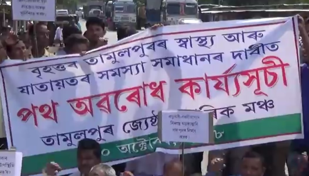 newsnextone.com। তামুলপুৰঃ বাক্সা জিলাৰ বৃহত্তৰ তামুলপুৰ মহকুমাৰ বিধস্ত ৰাস্তা ঘাট আৰু পয়ালগা স্বাস্থ্য সেৱা উন্নত কৰাৰ দাবীত আজি তামুলপুৰ জ্যেষ্ঠ নাগৰিক মঞ্চৰ উদ্যোগত ৰঙিয়া ভূটান ৰাষ্ট্ৰীয় ঘাইপথৰ ঘগ্ৰাচকত দুঘন্টীয়া পথ অৱৰোধ কাৰ্যসূচী ৰূপায়ন কৰে৷