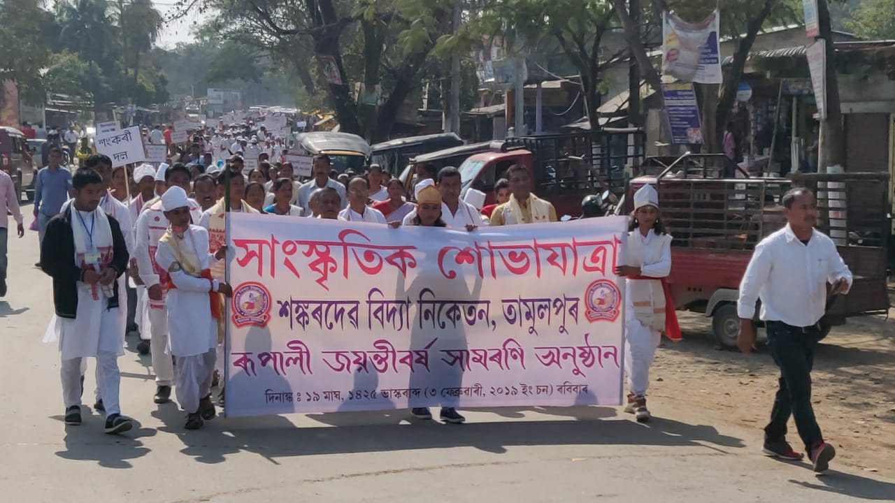 তামুলপুৰঃ শংকৰদেৱ বিদ্যা নিকেতনৰ ৰূপালী জয়ন্তী উৎসৱৰ দেওবাৰে দ্বিতীয় দিনা অঞ্চলটোৰ বিভিন্ন জনগোষ্ঠীয় কৃষ্টি সমূহৰ প্ৰদৰ্শনেৰে উলিওৱা সাংস্কৃতিক শোভাযাত্ৰাই তামুলপুৰ মহকুমাবাসীৰ লগতে সমগ্ৰ অসমলৈ কঢ়িয়াইছে সমন্বয়ৰ বাৰ্তা৷ সাংস্কৃতিকভাৱে চহকী তামুলপুৰত ইতিপূৰ্বৰেপৰা বসবাস কৰি অহা বড়ো-কছাৰী, ৰাভা, টোটলা, শৰণীয়া-কছাৰী, মদাহী, কোঁচ-ৰাজবংশী, নেপালী, গোৰ্খা, হাজং, বৰ্মন-কছাৰী, বাঙালী, মুছলমান, বামুন, কলিতা আদি জনগোষ্ঠীৰ বৰ্ণিল সংস্কৃতিয়ে তামুলপুৰ অঞ্চলটো মহিয়ান কৰি তুলিছে৷