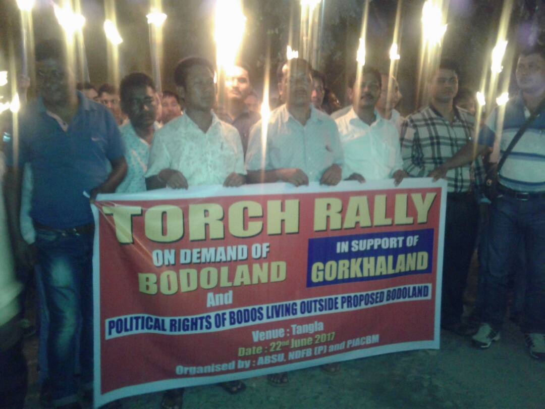 গোৰ্খা জনগোষ্ঠীৰ সমৰ্থনত আজি ভেৰগাওঁ মহকুমাৰ টংলাতে জোঁৰ সমদল উলিযায় পৃথক বড়ো ৰাজ্য দাবী জনায় সমিতিয়ে। এবছু, পিজেএচিবিএম আৰু এনডিএফবি(প্ৰ)ৰ নেতৃত্বত উলিওৱা এই সমদলত কেইবা হেজাৰ প্ৰতিবাদকাৰীয়ে আমাক বড়োলেণ্ড লাগিবই, বড়োলেণ্ড আমাৰ ন্যায্য দাবী, গোৰ্খালেণ্ড আমি সমৰ্থন কৰো ইত্যাদি শ্ল’গান প্ৰদান কৰে।