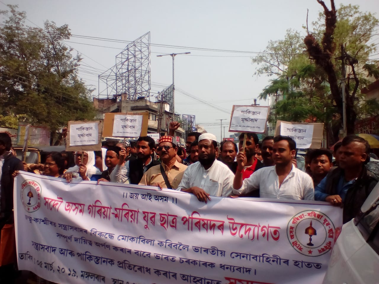 সন্ত্ৰাসবাদীৰ বিৰুদ্ধে প্ৰতিবাদী সমদল সদৌ অসম গৰীয়া-মৰিয়া যুৱ ছাত্ৰ পৰিষদৰ