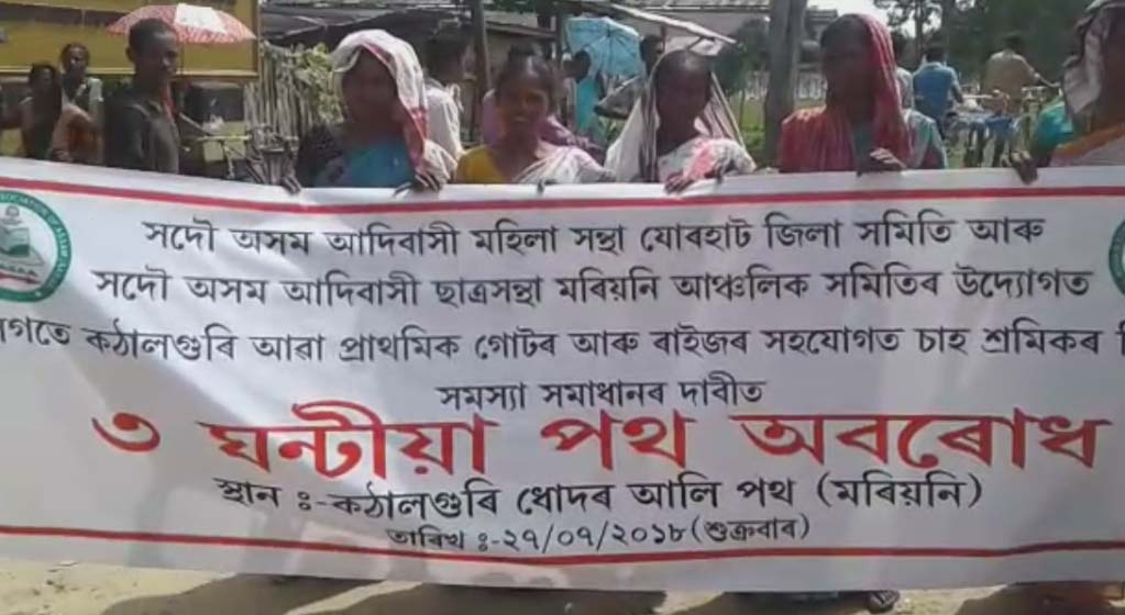 ৰাজ্যৰ বিভিন্ন প্ৰান্তত চাহ শ্ৰমিকে প্ৰতিবাদ কৰি অহাৰ সময়তে শুকুৰবাৰে যোৰহাট জিলাৰ মৰিয়নীত চাহ শ্ৰমিকে প্ৰতিবাদ সাব্যস্ত কৰি ১৩৭ টকাৰ পৰিৱৰ্তে ৩৫০ টকালৈ মজুৰি বৃদ্ধিৰ কৰাৰ দাবী জনায়৷
