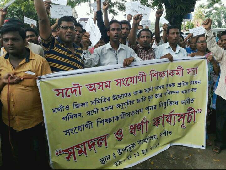 নগাঁওঃ সমগ্ৰ ৰাজ্যৰ বিভিন্ন প্ৰান্তৰ দৰে নগাঁৱতো ৰাজ্যৰ সংযোগী শিক্ষাকৰ্মীসকলক পুনৰ নিযুক্তিৰ দাবীত আজি তীব্ৰ প্ৰতিবাদী সাব্যস্ত কৰে৷