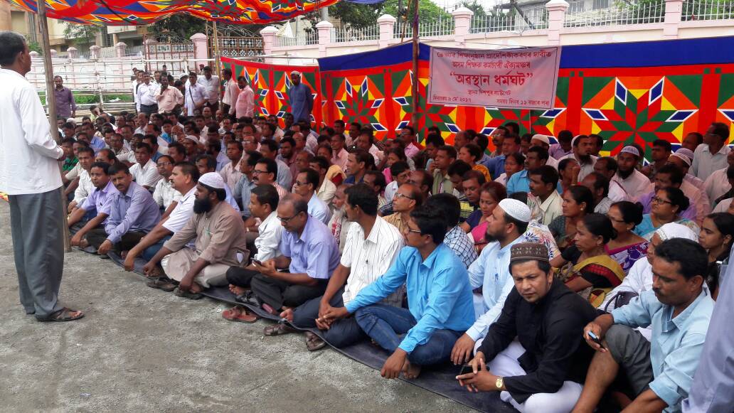 গুৱাহাটীঃ অসমৰ সৰ্বস্তৰৰ ভেঞ্চাৰ শিক্ষানুষ্ঠানত কৰ্মৰত শিক্ষক কৰ্মচাৰীৰ পদ প্ৰাদেশীকৰণৰ দাবীত আজি দিশপুৰ লাষ্টগেট উত্তাল কৰে অসম শিক্ষক-কৰ্মচাৰী ঐক্যমঞ্চই। সুদীৰ্ঘ ২০-২৫ বছৰ ধৰি বিনা বেতনে শিক্ষাদান কৰি অহা প্ৰাদেশীকৰণৰ পৰা বঞ্চিত প্ৰায় ৪৫ হাজাৰ শিক্ষক কৰ্মচাৰীক বৰ্তমান বিজেপি চৰকাৰৰ ক্ষমতাশালী শিক্ষামন্ত্ৰী হিমন্ত বিশ্ব শৰ্মাই কৰা বঞ্চনাৰ প্ৰতিবাদত আজি সংস্থাটোৱে অৱস্থান ধৰ্মঘট কাৰ্য্যসূচী ৰূপায়ণ কৰে।