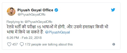 ডিজিটেল ডেস্কঃ ৰেল বিভাগৰ চতুৰ্থ বৰ্গৰ কৰ্মচাৰী নিয়োগৰ বাবে অনুষ্ঠিত হ’ব লগা পৰীক্ষাৰ প্ৰ-পত্ৰ পূৰণৰ নিয়ম কিছু সাল-সলনি কৰিছে কেন্দ্ৰীয় ৰেল মন্ত্ৰী পীযুষ গোৱেলে৷
