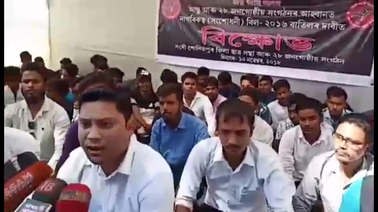 তেজপুৰঃ নাগৰিকত্ব (সংশোধনী) বিধেয়ক ২০১৬ বাতিলৰ দাবীত আছুকে ধৰি ১০ জাতীয় সংগঠনে শনিবাৰে শোনিতপুৰ জিলা সদৰ তেজপুৰত সকীয়নি বিক্ষোভ কাৰ্যসূচী ৰূপায়ণ কৰে ৷