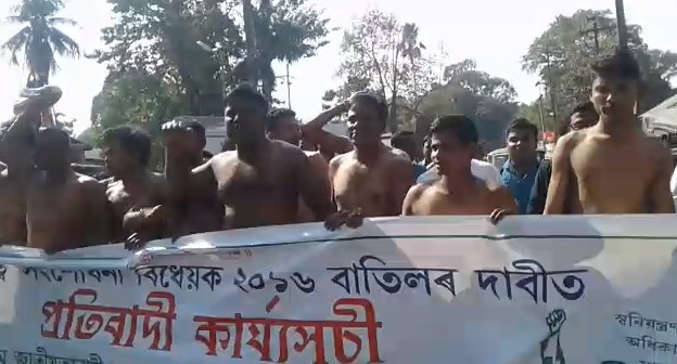 তেজপুৰঃ শনিবাৰে তেজপুৰত অসম জাতীয়তাবাদী যুৱ ছাত্ৰ পৰিষদৰ তেজপুৰ জিলা সমিতিয়ে নাগৰিকত্ব সংশোধনী বিধেয়কৰ বিৰোধিতা কৰি অৰ্ধ উলংগ হৈ প্ৰতিবাদ সাব্যস্ত কৰে।