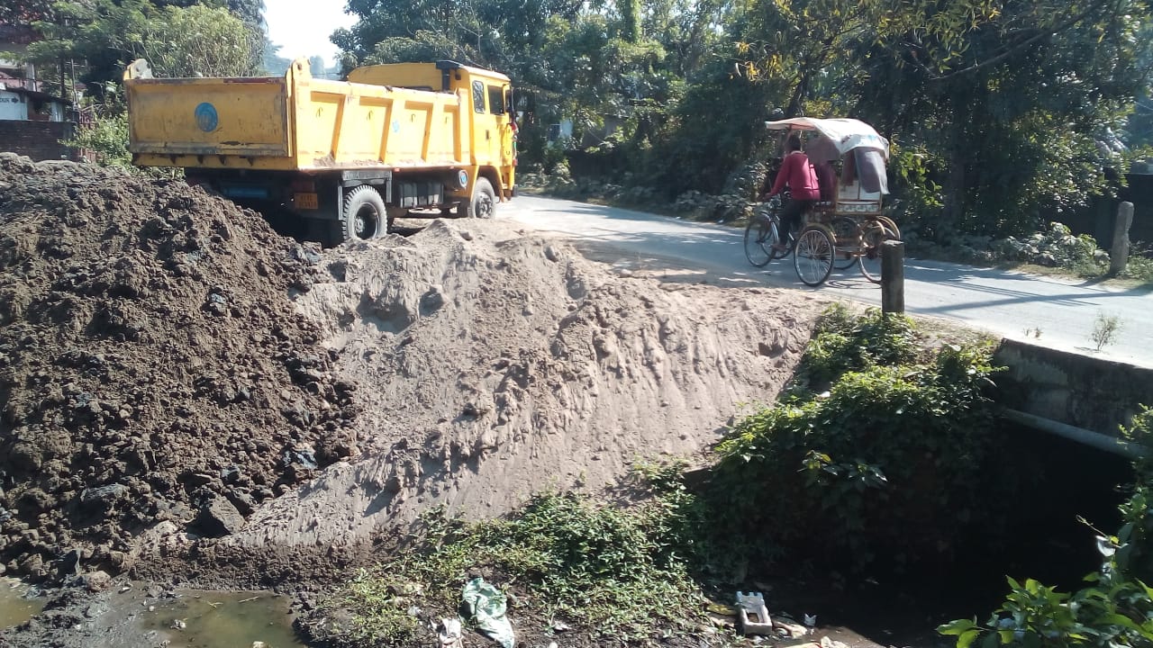 ট্ৰাকে ট্ৰাকে মাটি পেলোৱা হৈছে চহৰখনৰ এটা হোলাত। তেজপুৰত জিলা প্ৰশাসনৰ অলক্ষিতে এচাম লোকে জধেমধে এনেদৰে এই কাৰ্য সংঘটিত কৰাত চিন্তাত পৰিছে সচেতন ৰাইজ।