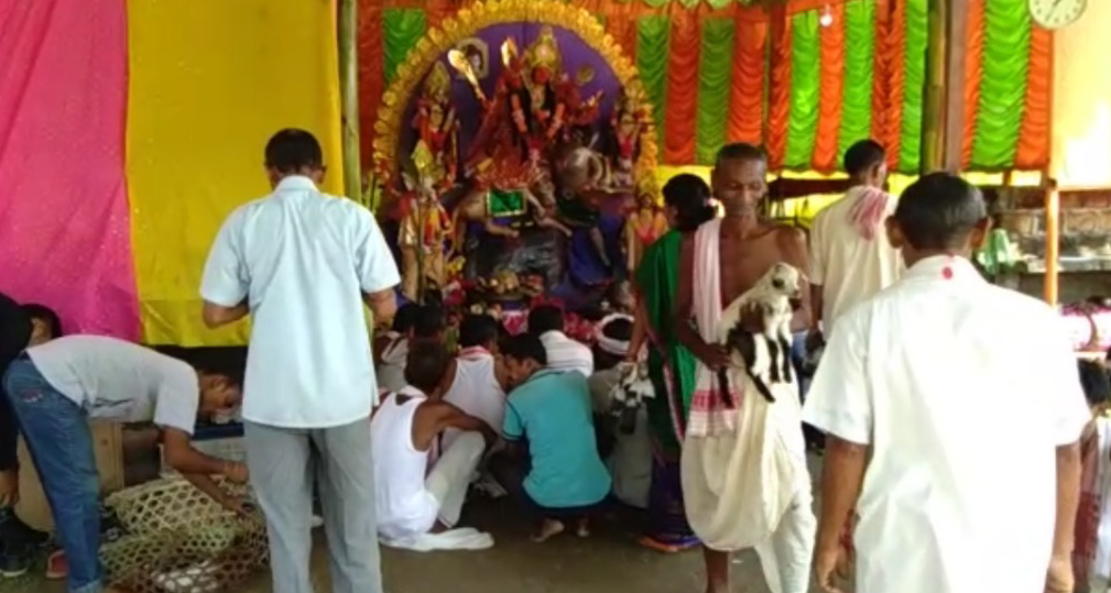 দলংঘাটঃ দৰং জিলাৰ গাখীৰ খোৱা ৰাজ হাউলিত ৰজাঘৰীয়া পৰিয়ালে চাৰিশ বছৰীয়া পৰম্পৰা ধ্বজা উৰুৱাই মহবলি প্ৰথাৰে পালন কৰিলে মহা অষ্টমী৷ প্ৰায় চাৰিশ বছৰ পূর্বে আৰম্ভ কৰা পূজা ভাগত পূৰ্ব্বৰ দৰেই বলি বিধানৰ মাজেৰে মা দুৰ্গাৰ প্ৰতি সশ্ৰদ্ধ প্ৰনিপাত জনাই আহিছে ৰজাঘৰীয়া পৰিয়ালটোৱে৷