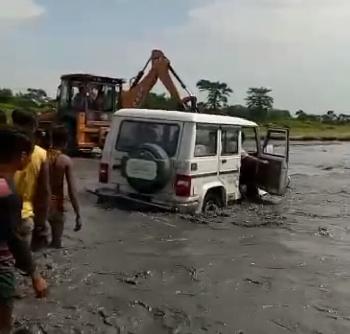 দেওবাৰে নৈখনৰ মাজৰে পানী ভাঙি পাৰ হ’ব বিছৰা এখন টাটা ছুম গাড়ী নৈৰ মাজত আবদ্ধ হৈ পৰে। পানীৰ মাজত বিপদ সংকুলভাৱে আবদ্ধ হৈ পৰা টাটা ছুম’ গাড়ী খন উঠাবলৈ অৱশেষত জেচিবিৰ সহায় লৱলগীয়া হয়৷