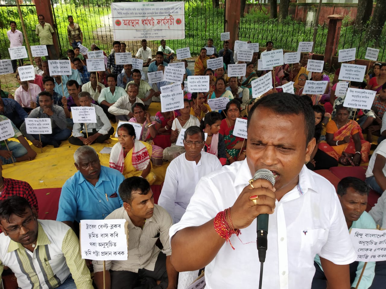 শতাধিক লোকৰ উপস্থিতিত হাতে হাতে প্লে-কাৰ্ড লৈ হিন্দু বাংলাদেশীৰ নামত অনুসূচিত জাতিৰ লোকক হাৰাশাস্তি বন্ধ কৰক, ডি ভোটাৰৰ সমস্যা সমাধান কৰক, ট্ৰাইবেল বেল্ট-ব্লকৰ ভূমিত বসবাস কৰা অনুসূচিত লোকক ভূমিপট্টা প্ৰদান কৰক, বিটিচি চৰকাৰ হায় হায়, ৰাজ্য চৰকাৰ হায় হায় আদি শ্ল’গান প্ৰদান কৰে। প্ৰতিবাদী কাযসূচীত সহযোগ কৰিছিল ভাৰত মুক্তি মৰ্চা নামৰ এটি সংগঠনে।