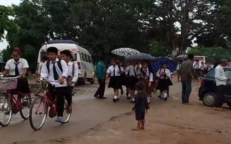 আন দিনাৰ দৰে আজিও বিদ্যালয়সমুহত নিৰ্দিষ্ট সময়ত পাঠদান চলি থকাৰ সময়তে এক উৰা বাতৰিক কেন্দ্ৰ কৰি আতংকময় পৰিবেশৰ সৃষ্টি হয় ছাত্ৰ-ছাত্ৰীৰ মাজত৷ বৃহত্তৰ খেৰণি, জেংখা, ডংকামোকাম, সাতগাওঁ আদিত অৱস্থিত চৰকাৰী আৰু ব্যক্তিগত খণ্ডৰ বহু কেইখন বিদ্যালয়ৰ ছাত্ৰ-ছাত্ৰীয়ে সন্ত্ৰাস সৃষ্টি কৰা খবৰ লাভ কৰাৰ পাছতে কোনো শিক্ষাগুৰু অথবা কৰ্তৃপক্ষৰ কথা নমনাকৈ পাঠ গ্ৰহণ বাদ দি বিদ্যালয় এৰি পলায়ন কৰে ছাত্ৰ-ছাত্ৰীসকলে৷