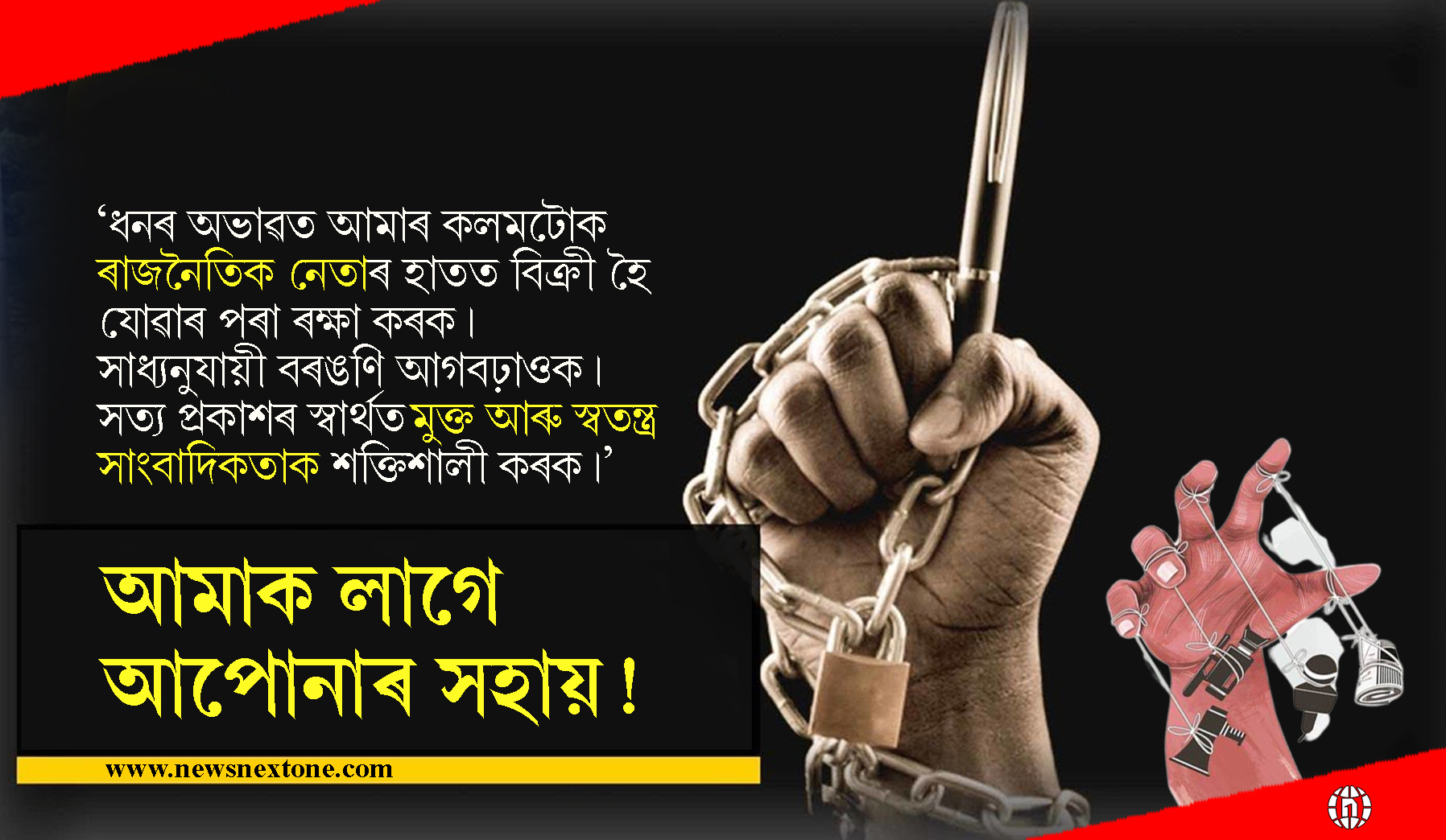 অসমৰ সাংবাদিকতাৰ ক্ষেত্ৰখনত News Next One-এ আৰম্ভ কৰা এই আন্দোলনত এতিয়া প্ৰয়োজন সমূহ অসমবাসী ৰাইজৰ অংশগ্ৰহণ! ৰাইজৰ অংশগ্ৰহণ তথা ইচ্ছাই নিৰ্ণয় কৰিব News Next Oneৰ ভৱিষ্যত, নিৰ্ণয় কৰিব অসমত গণতন্ত্ৰৰ চতুৰ্থ স্তম্ভৰ শক্তি!