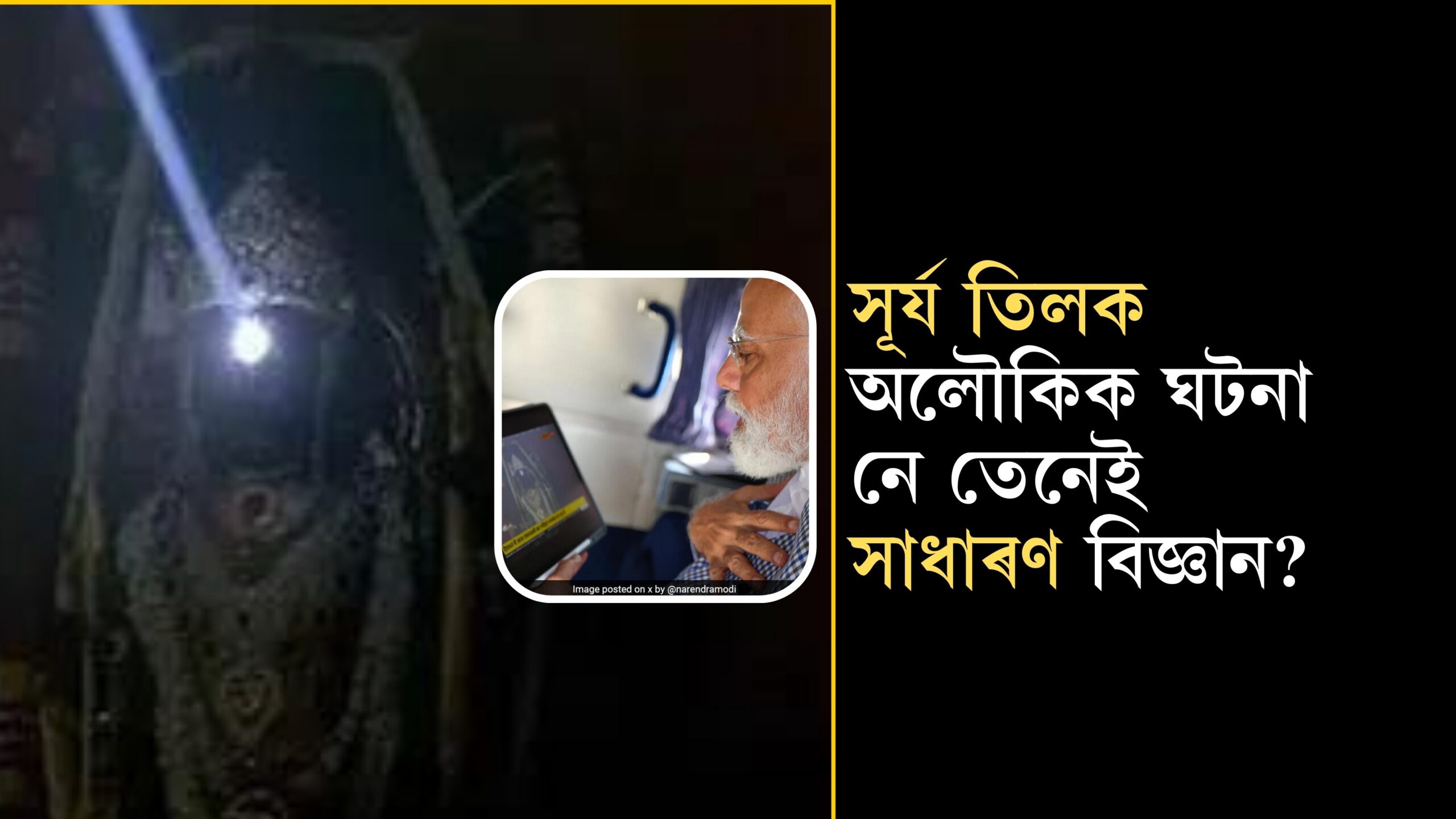 বিজ্ঞান-প্ৰযুক্তিৰ সহায়ত ৰাম নৱমীৰ দুপৰীয়া অযোধ্যাৰ ৰাম মন্দিৰত আলোকিত হৈ পৰিল ৰাম লালা। ১৭ এপ্ৰিল অৰ্থাৎ বুধবাৰে ৰাম নৱমী উপলক্ষে এক আকাশী পৰিঘটনাৰ সৃষ্টি হ’ল ৰাম মন্দিৰত। এই দিনটোতে ৰাম মন্দিৰত প্ৰতিস্থাপিত ভগৱান শ্ৰীৰামৰ বাল্য কালৰ প্ৰতিমূৰ্তি অৰ্থাৎ ৰাম লালাৰ কপালত মন্দিৰৰ অনন্য ডিজাইনৰ মাজেৰে সৰকি তিলক সানিলে সূৰ্যৰ একাজলি কিৰণে।