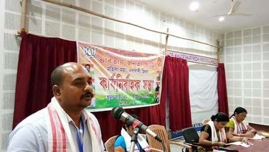 জিলা মহিলা মৰ্চাৰ সভানেত্ৰী অঞ্জনা বৰ্মনৰ সভানেত্ৰীত্বত অনুষ্ঠিত হোৱা সভাৰ আঁত ধৰে সাধাৰণ সম্পাদিকা পপি দত্ত৷ সভাখনত নলবাৰী সমষ্টিৰ বিধায়ক অশোক কুমাৰ শৰ্মা, ৰাজ্যিক মহিলা মৰ্চাৰ সভানেত্ৰী বিজুলী কলিতা মেধি, নলবাৰী জিলা পৰিষদৰ সভানেত্ৰী চপলা ৰাজবংশী মেধি, জিলা বিজেপিৰ সভাপতি বনদ্বীপ ডেকা, সাধাৰণ সম্পাদক নিতুল ডেকা, কোষাধ্যক্ষ ধ্ৰুৱজ্যোতি দত্ত সহ কেইবাগৰাকীও বিজেপি নেতা-নেত্ৰী উপস্থিত থাকে।